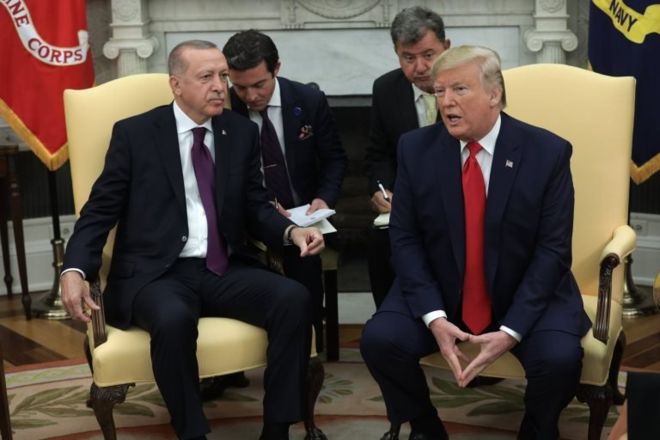 ABD Başkanı Donald Trump ise ikili görüşme önce yaptığı açıklamada “Türkiye çok iyi ürünler yapıyor, biz de iyi ürünler yapıyoruz. Türkiye ile (yıllık) ticaret hacmimizi geliştirmek istiyoruz. Şimdilik 20 milyar dolarda, bunu 100 milyar dolara çıkarmak istiyoruz. Bunu hızlı bir şekilde yapabiliriz. S-400’ler hakkında konuşacağız, F-35’lerden bahsedeceğiz” dedi.