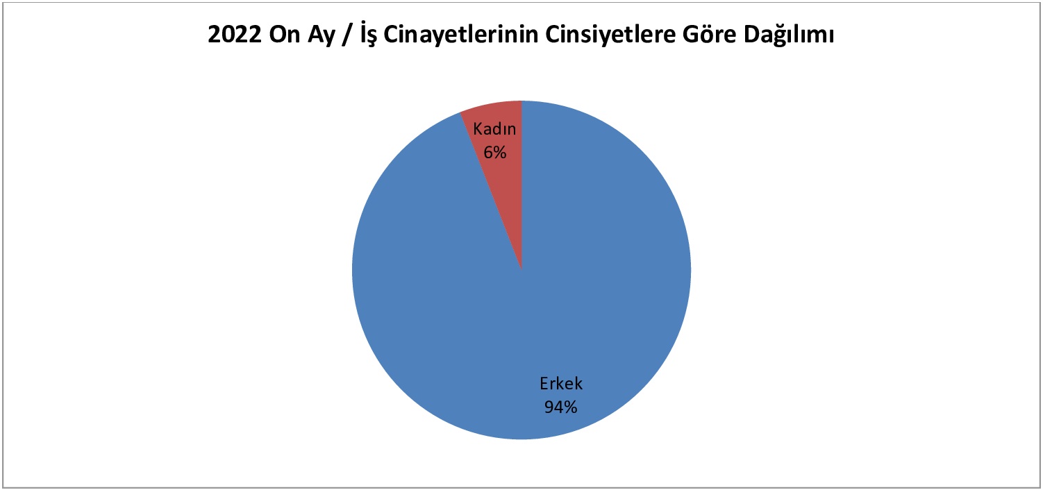 2022 yılının ilk on ayında iş cinayetlerinin cinsiyetlere göre dağılımı şöyle: 90 kadın işçi ve 1431 erkek işçi hayatını kaybetti…