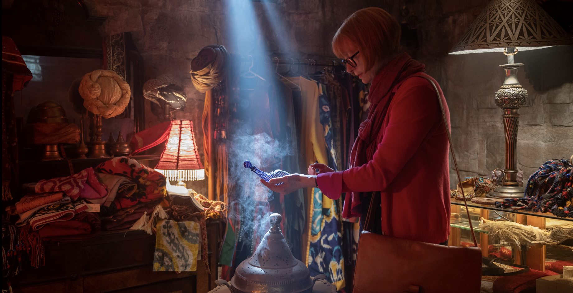 Bunun üzerine ikisinin tam olarak yaklaşması için, sevgili siyahi Cin’imiz ona geçmişini anlatmaya başlar: Kaldıkları otel odasında (Pera Palas?)… Çünkü kendisi kim bilir kaç yüzyıldır (bir yerde 2500 yıl lafı geçer!), bir bölümü orada, yani Osmanlı’nın başkenti İstanbul’da olmak üzere, ne maceralar yaşamamıştır ki… Böylece bir yandan uzakta eski başkentten Sultanahmet, Topkapı Sarayı, Boğaz yalıları, Pera Palas vb. seçkin ve çok iyi seçilmiş görüntüler perdeye yansırken, Kapalıçarşı’nın da tam 12 sokak ve 4 bin dükkan içeren bir küçük ülke olduğunu öğreniriz!..