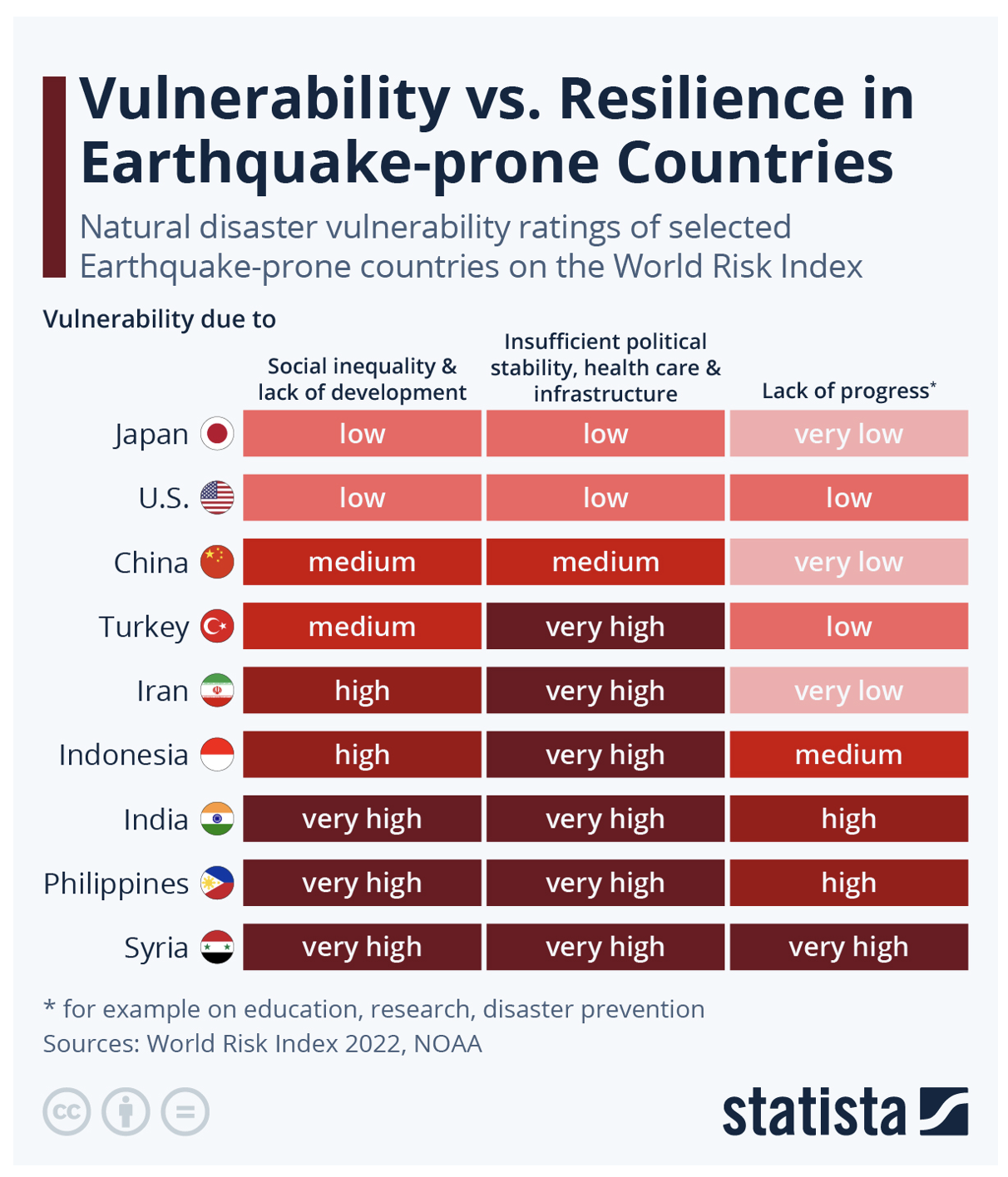 2) https://www.statista.com/chart/29258/vulnerability-to-natural-disaster (8 February 2023).