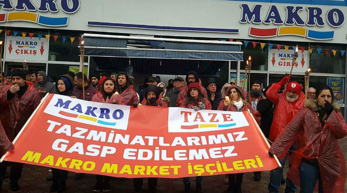 Samsun Makro-Taze Marketin kapanmasıyla hakları verilmeden işten çıkarılan işçiler, şehir merkezinde eylem gerçekleştirdi. Haklarını alana kadar mücadele edeceklerini söyleyen işçilere, yurttaşlar alkışlarla, araba kornalarıyla destek verdi. Samsun’da işten atılan Makro-Taze Market işçileri, Samsun Cumhuriyet Meydanı’nda toplanarak Makro Marketin Barış Bulvarı şubesine yürüdü. Evrensel’in haberine göre, eylem boyunca “İşçilerin birliği sermayeyi yenecek”, “Kurtuluş yok tek başına,