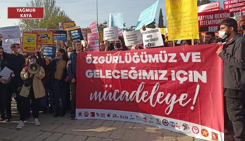 Üniversitelerin bugün kayyım eliyle baskı altına alınmak istendiğini söyleyen İstanbul Gençlik Örgütleri, ‘Devlet emriyle üniversiteler tahakküm altına alınıyor’ dedi. FacebookTwitterWhatsappEpostaPrintGoogle News Yağmur KAYA ARTI GERÇEK - Gençlik Örgütleri, Yüksek Öğretim Kurumu’nu (YÖK) Beyazıt’ta bulunan İstanbul Üniversitesi önünde protesto etti. YÖK’ün 12 Eylül 1980 Askeri Darbesinin bir ürünü olduğunu ifade eden Gençlik Örgütleri, YÖK’ün kurulmasıyla üniversitelerin asıl
