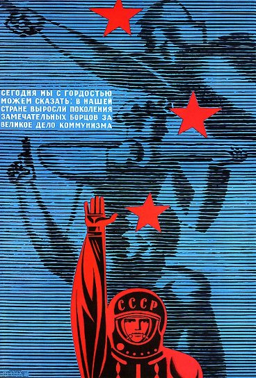 Sovyetler’in İkinci Paylaşım Savaşı’nın ardından uzay programında elde ettiği başarılar hızla sanatta da kendisini gösterir. Bu dönem yapılan tasarımlar, illüstrasyonlar ve resimler o denli etkileyicidir ki, bugün bile Sovyet Uzay Programı dendiğinde bu görüntüler geliyor: Ellerinde orak çekiçlerle uzayda kozmonotlar, işçiler ve bilim insanları el ele yıldızlara doğru… Etkileyici propagandif eserlerin dışında, sanatçılar aracılığıyla dönemin Sovyet toplumunun uzaydaki gelecek hayallerini kimi diğer adreslerden de öğrenebiliriz: Örneğin 1933’de yayınlanmaya başlayan Tekhnika Molodezhi isimli teknoloji ve bilim dergisi.
